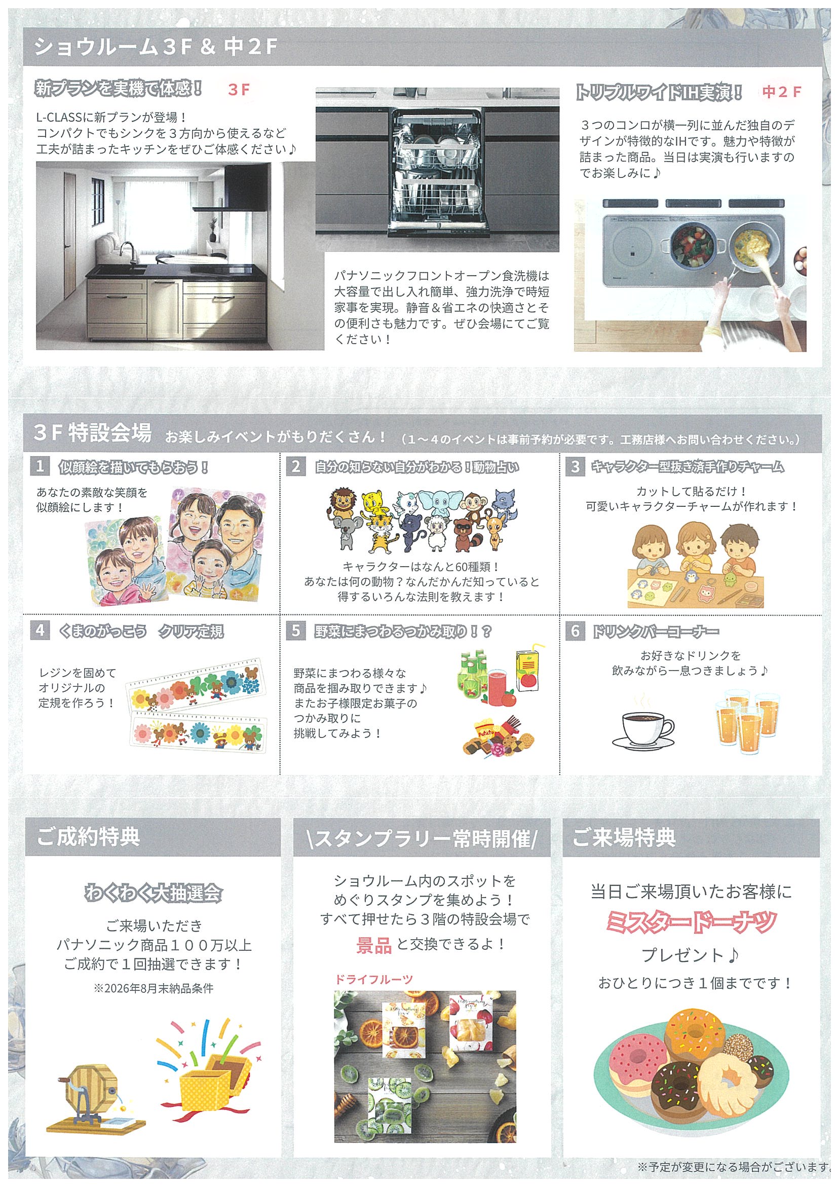 2/28 ショールームイベント詳細 2026.01.23 3Fではキッチンの新プラン登場! 2FでトリプルワイドIHを実演♪ 3F特設会場ではお楽しみイベント盛りだくさん!! 大人から子供まで楽しめます(^_^) スタンプラリーは常時開催しています! 一覧へ戻る